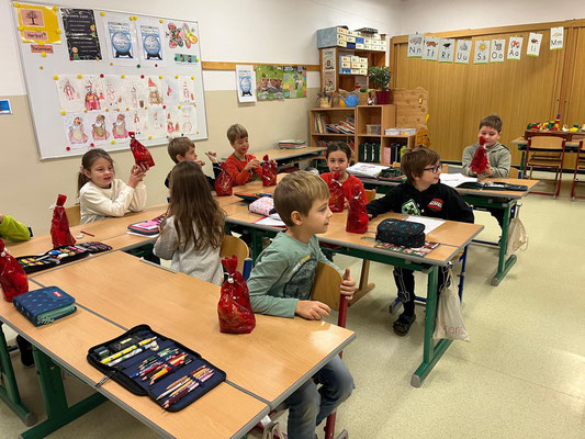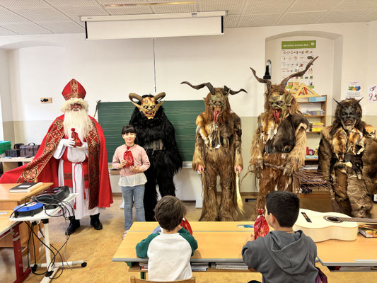 In jeder Klasse wurde der besondere Gast mit einem Nikolausgedicht und einem fröhlichen Nikolauslied willkommen geheißen. Die Krampusse hatten glücklicherweise keine Arbeit – alle Kinder waren fast das ganze Jahr über brav!