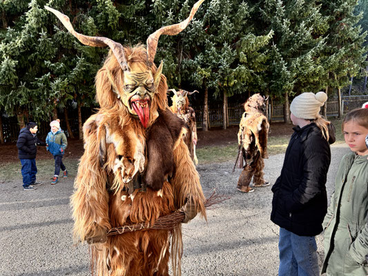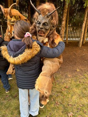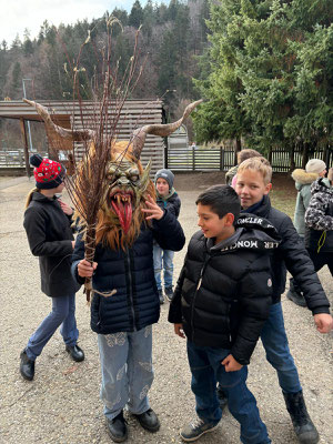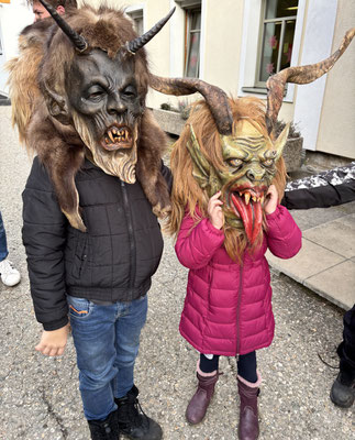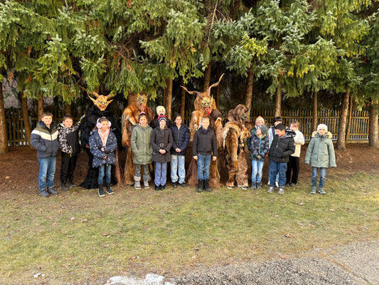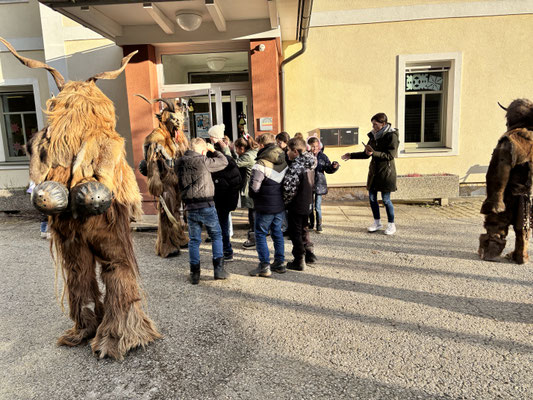 Zum krönenden Abschluss versammelten sich die Krampusse und Kinder im Schulhof, wo gemeinsam gelacht, bestaunt und fotografiert wurde. Ein besonderes Highlight: Die Krampusse ließen die Kinder ihre beeindruckenden Masken ausprobieren, was für viele strahlende Gesichter und unvergessliche Momente sorgte.